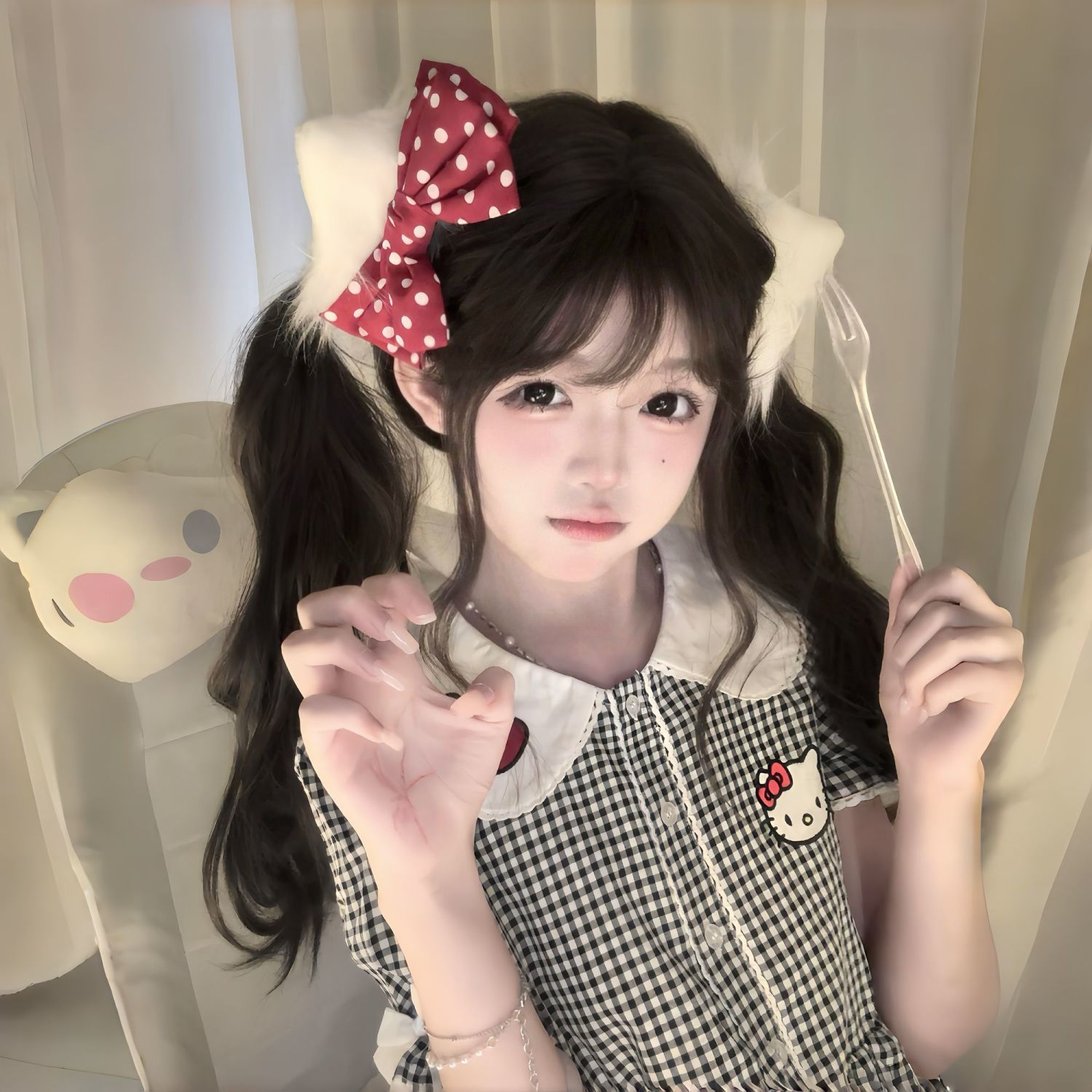 Long-haired Lolita long curly hair wig for women, full-head style with double ponytails, curly hair Lolita wig for women.